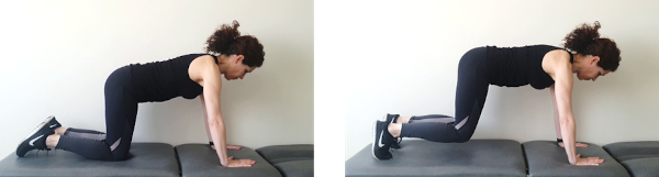 En cuadrupedia, con la zona lumbar firme y el ombligo medido hacia dentro, apoyamos las puntas de los pies y levantamos ligeramente las rodillas, manteniendo la espalda recta. Aguantamos 15 segundos y volvemos despacio a la posición de reposo.
