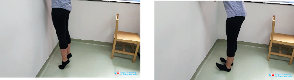 Caminamos de puntillas intentando levantar bien los talones. A la vuelta, caminamos de talones intentando despegar bien los dedos del suelo. Es aconsejable realizar el ejercicio cerca de una pared o similar por si necesitamos apoyarnos en algún momento.