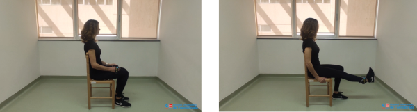 Sentados en una silla, con un lastre o tobillera lastrada en el tobillo. Extendemos totalmente la rodilla llevando la punta del pie hacia nosotros. Mantenemos durante 5 segundos y posteriormente volvemos lentamente a la posición inicial sin dejar caer el pie.
