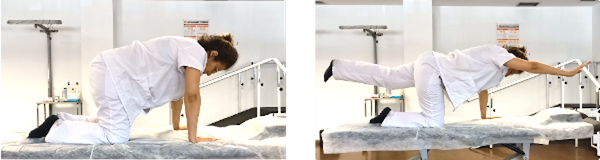 En posición de cuatro patas, con las manos debajo de los hombros y las rodillas alineadas con las caderas. Elevamos un brazo y la pierna contraria hasta llegar a la horizontal. Mantenemos durante 5 segundos y volvemos a la posición inicial. Repetiremos el ejercicio con el brazo y la pierna con los que no lo hemos hecho.