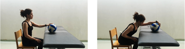 5 · Deslizamiento sobre mesa con pelota para movilización de hombro en diferentes direcciones