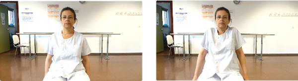 Sentados, con la espalda bien apoyada y los brazos a lo largo del cuerpo. Elevamos los hombros sin mover la cabeza. Mantenemos esta posición durante 5 segundos y volvemos a la posición inicial.