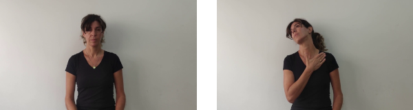 Sentados, con la espalda bien apoyada. Inclinamos la cabeza hacia un lado y nos ayudamos con la mano del mismo lado para aumentar ligeramente el estiramiento. Mantenemos 20 segundos y volvemos a la posición inicial. Posteriormente realizaremos el mismo ejercicio hacia el lado contrario.