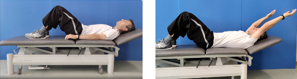Tumbados boca arriba con las piernas flexionadas y los pies apoyados. Los brazos descansan a los lados del cuerpo. Tomamos aire lentamente por la nariz al mismo tiempo que elevamos los brazos lo que podamos. Posteriormente expulsamos lentamente el aire por la boca con los labios fruncidos mientras descienden los brazos volviendo a la posición inicial.