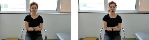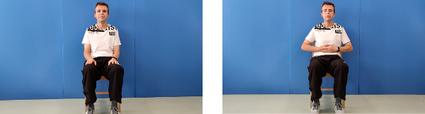 En posición sentada nos abrazamos fuertemente para proteger la cicatriz. Tomamos aire por la nariz y expulsamos el aire por la boca manteniendo esta abierta y a una velocidad media, como si quisiéramos empañar un cristal. Deberemos expulsar todo el aire que tengamos dentro.
