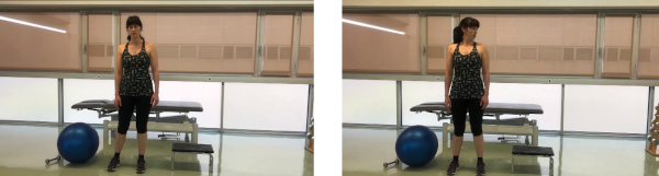 De pie, en posición elongada y con la cabeza girada hacia un lado, vamos a aprender cómo toser. Primero cogemos aire, después contraemos suelo pélvico y abdomen y sin relajar, tosemos. Inicialmente realizamos una tos suave. Según vayamos controlando esta tos podemos ir progresando en potencia.