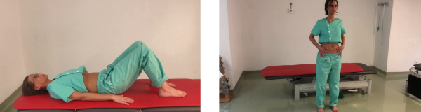 Vamos a levantarnos de una silla. La espalda debe estar recta y sin arquearse. Tomamos aire, aguantando durante un segundo mientras contraemos el suelo pélvico y recogemos la parte inferior del abdomen. Mientras nos levantamos, inclinando el cuerpo hacia delante y poniéndonos de pie, vamos exhalando. Una vez de pie, realajamos el suelo pélvico y el abdomen.