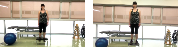 Cogemos aire de pie, frente a un escalón,aguantando durante un segundo, contrayendo suelo pelvico y recogiendo la parte inferior del abdomen. Subimos el escalón, mientras dejamos salir el aire. Una vez arriba, repetimos, cogiendo aire, contrayendo suelo pélvico y la parte inferior del abdomen a la vez que bajamos el escalón sacando el aire.