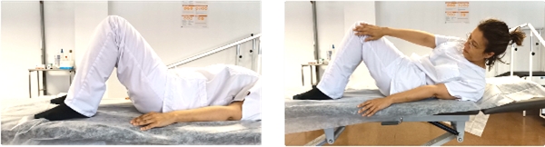 Tumbados boca arriba, con las rodillas flexionadas y los pies apoyados. Contraemos abdominales y glúteos intentado que la zona lumbar se pegue lo máximo posible a la superficie sobre la que estamos. Mantenemos la posición unos 5 segundos y relajamos para volver a la posición inicial.