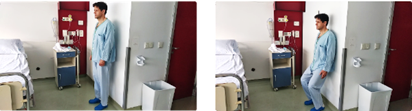 De pie, con la espalda apoyada en la pared, flexionamos ambas piernas a la vez y posteriormente las estiramos de forma lenta.