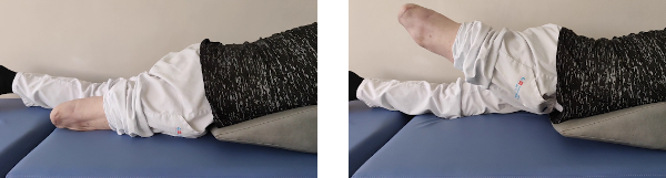 Flexionamos rodilla y cadera al máximo, sin dolor y con una tobillera lastrada en el tobillo firmemente sujeta. Mantenemos unos 5 segundos y volvemos a extender. Al flexionar el talón puede ir resbalando sobre la superficie o bien ir en el aire. En el caso de hacer el ejercicio sin apoyar el pie, el esfuerzo será mayor.