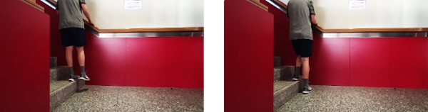 De pie frente a un escalón, ladrillo o elemento similar (que sea estable), subimos primero el pie del miembro inferior afecto y después el otro. Inmediatamente después, descendemos primero el pie del miembro afecto y después el sano. Repetimos todo lo rápido que podamos.