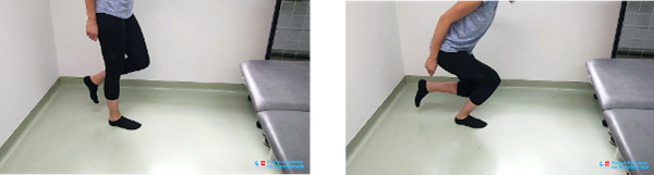 De pie, intentamos apoyarnos con la mano contraria al pie afecto en una pared, mesa, etc. Nos quedamos a la pata coja sobre el miembro inferior afecto y realizaremos flexión máxima y extensión de la rodilla intentando que el pie sano no toque el suelo en ningún momento.