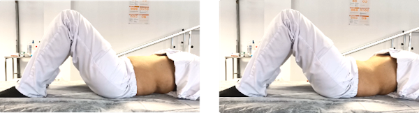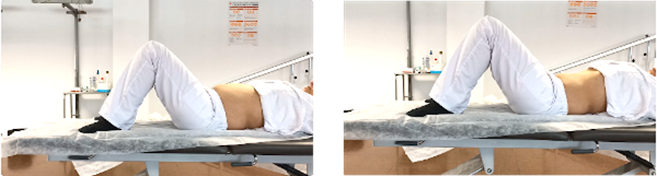 Tumbados boca arriba, con las rodillas flexionadas y los pies apoyados. Contraemos abdominales y glúteos intentado que la zona lumbar se pegue lo máximo posible a la superficie sobre la que estamos. Mantenemos la posición unos 5 segundos y relajamos para volver a la posición inicial.